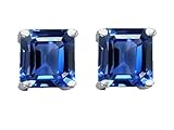 925 Sterling Silver and Created Square Sapphire Earrings crafted in 925 Sterling Silver Dimensions: Width: 7.00 mm Length: 7.00 mm. 2 Stones 3.00 Carats Emerald Cut 7 x 7mm Color: Blue Clarity: Clean. FREE GIFT BAG! FREE GIFT CARD! Finejewelers Style Number: 302450.